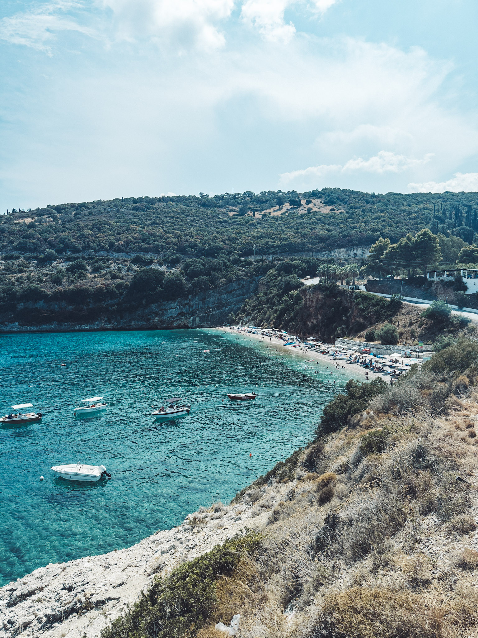 Ein paar Hundert Meter weiter liegt der Kremidi Beach – zumindest auf der Karte. Von oben betrachtet wirkt der abgelegene Strand traumhaft ruhig und naturbelassen. Doch: Der Weg hinunter ist steil und steinig. Mit Kinderwagen, Strandtasche und Proviant ist an einen Abstieg nicht zu denken. Die Stimmung kippt langsam.