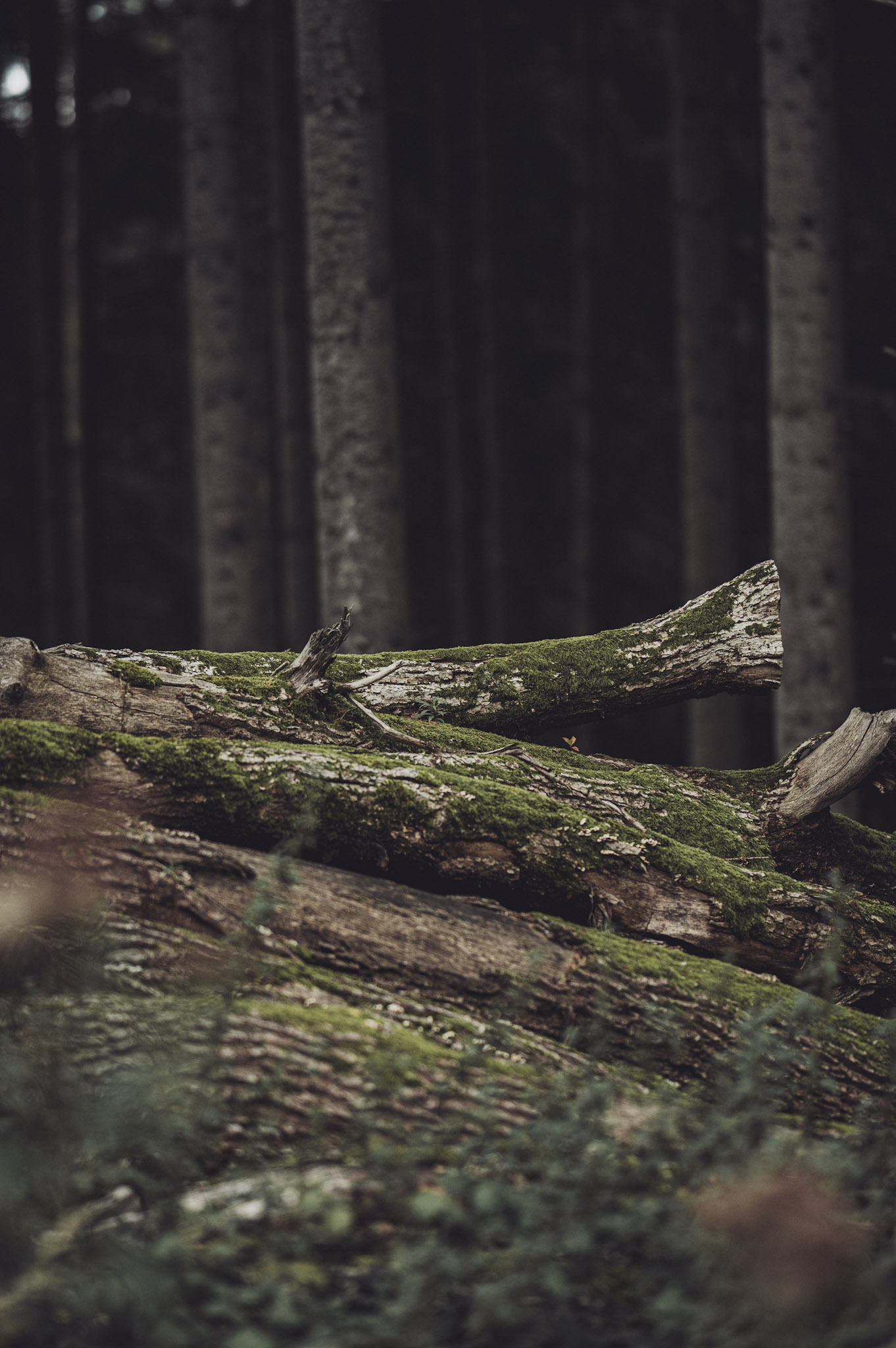 Kurz nach einem Maisfeld tauchen wir in ein kleines Waldstück mit hohen Tannen ein – angenehm schattig und wunderbar ruhig.